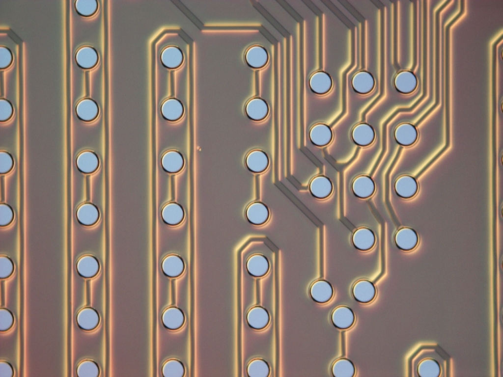 Das Ziel trockenchemischer Ätzprozesse ist die Herstellung komplexer, hochaufgelöster Mikrostrukturen. Dazu werden die Substrate einem Plasma ausgesetzt. Beim physikalischen Trockenätzen erfolgt der Materialabtrag allein durch den Beschuss der Oberfläche mit Ionen, während beim chemischen Trockenätzen der Abtrag durch eine chemische Reaktion mit angeregten Gasteilchen erfolgt. Auch eine Kombination beider Prozesse ist möglich und besitzt grosse Bedeutung in der Herstellung integrierter Schaltungen und mikromechanischer Bauteile. Mit dem sogennanten Boschprozess (auch DRIE, ASE oder Gas-Chopping genannt) ist man heute in der Lage, sehr feine und tiefe Strukturen herzustellen. Wir optimieren jeden unserer Prozesse auf die jeweiligen Anforderungen an Ätzrate, Selektivität und Aspektverhältnisse der Strukturen.