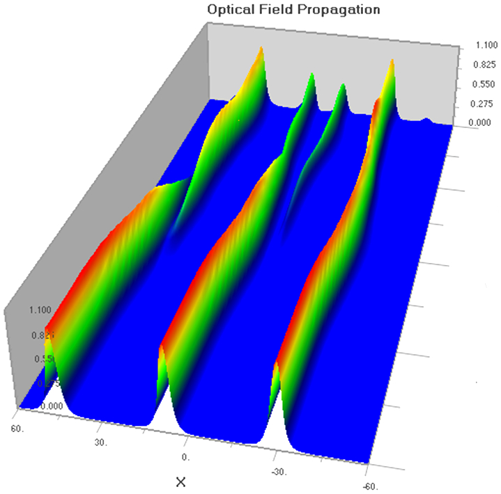 Für die Simulation von Singlemode Wellenleitern oder Fasern müssen wellenoptische Phänomene (wie z.B. Beugung und Interferenz) mitberücksichtigt werden. Ein optimales Softwarepaket für die integrierte Optik stellt das BPM System BeamPROP (der Firma Synopsis - RSoft) dar. Mittels Mode-Solver kann die Energieverteilung im Wellenleiterquerschnitt berechnet werden und mit der Beam Propagation Methode kann diese Feldverteilung dann über das gewünschte Bauteil hinweg propagiert werden. Mit BeamPROP können sowohl 2D wie auch rechenintensive 3D Probleme gelöst werden.