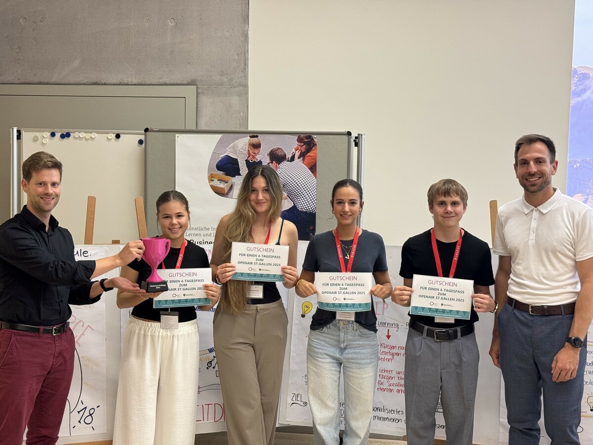 Um eines der begehrten Tickets zum OpenAir St.Gallen zu gewinnen musste gegen Ende der Veranstaltung die Jury in dreiminütigen Pitches von der eigenen Idee überzeugt werden. Expertinnen und Experten aus Forschung und Praxis beurteilten die Ideen und Präsentationen und kürten zum Schluss eine Gruppe der Kantonsschule am Burggraben zum Sieger. Die Besonderheit ihrer Idee: je nach Lerntyp (visuell, auditiv, kommunikativ oder motorisch) werden von der KI auf die lernende Person massgeschneiderte Aufgaben zusammengestellt, um ein effizientes und optimales Lernergebnis sicherzustellen.