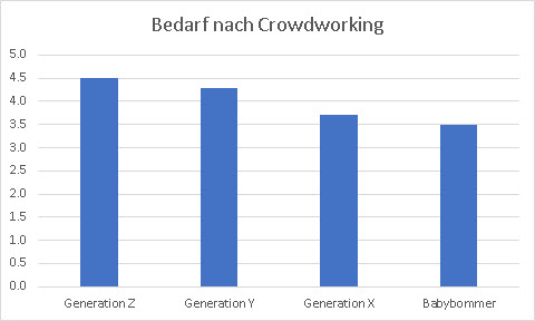 Abbildung 2: Die Generation Z ist offener für neue Arbeitsformen wie Crowdworking. Das klassische Büro mit Präsenz vor Ort hat nicht mehr dieselbe Bedeutung wie für andere Generationen (Quelle: Studie von Zeam und Link*)