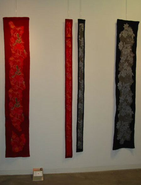 Zum Abschluss des Gartenjahrs 2006 "Paradiese auf Zeit" waren Werke der beiden Textilkünstlerinnen zu sehen. Die einzeln beleuchteten Bilder wirkten wie farbige Blumenbeete, die die vier Jahreszeiten spiegelten. So entstanden eigentliche textile Gärten.