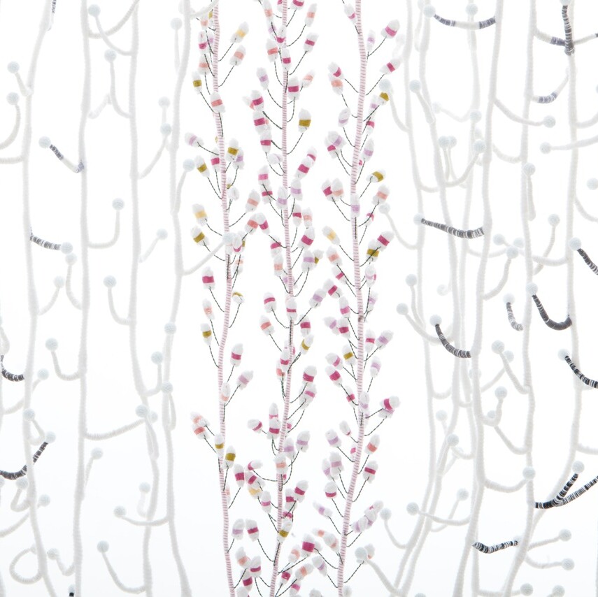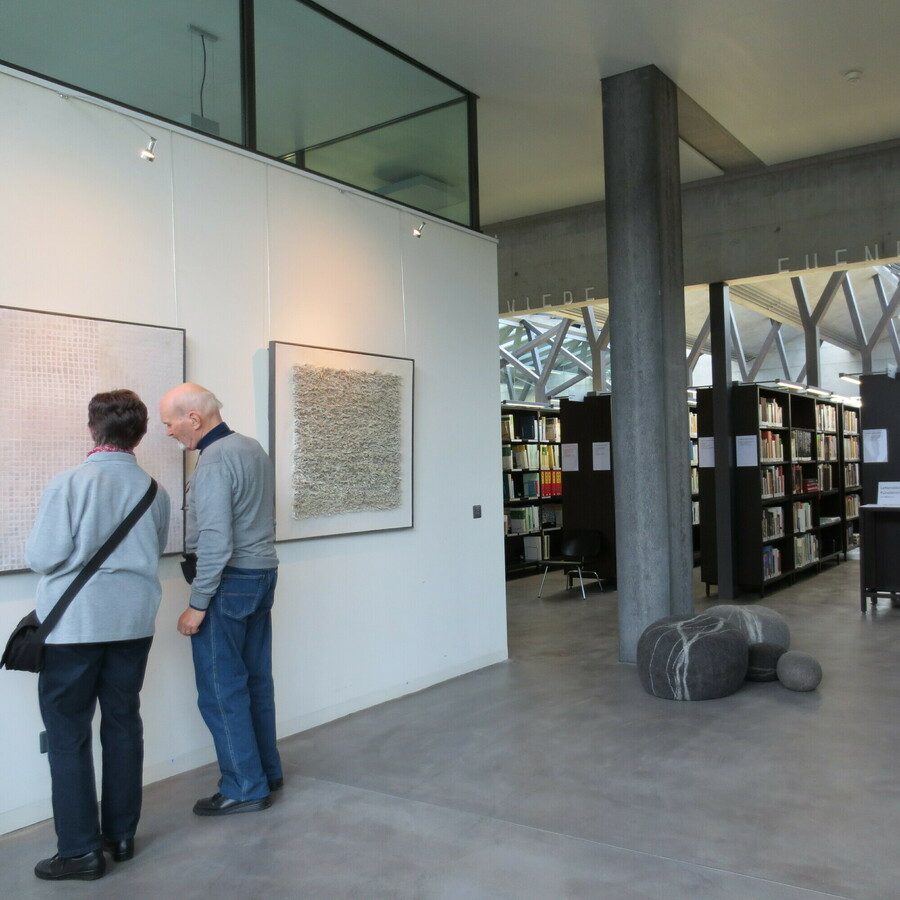 Hundertfach umwickelt und Zusammengefügtes begegnet konkret-konstruktiver farbig abgestufter Stickerei. Die beiden Frauen verbinden Tausende von Fäden, Wortspiele und Gedanken, eine Vielfalt von ganz eigenständiger, faszinierend künstlerischer Umsetzung.