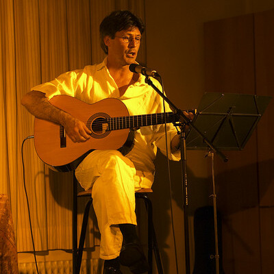 In der Galerie Textilaltro sprach und las Stefan Kammhuber, Professor für Kommunikation an der HSR, die Texte von Neruda. Er wurde musikalisch begleitet von Eduardo Verdugo, der die Verse Nerudas mit Liedern aus Chile und Spanien untermalte.