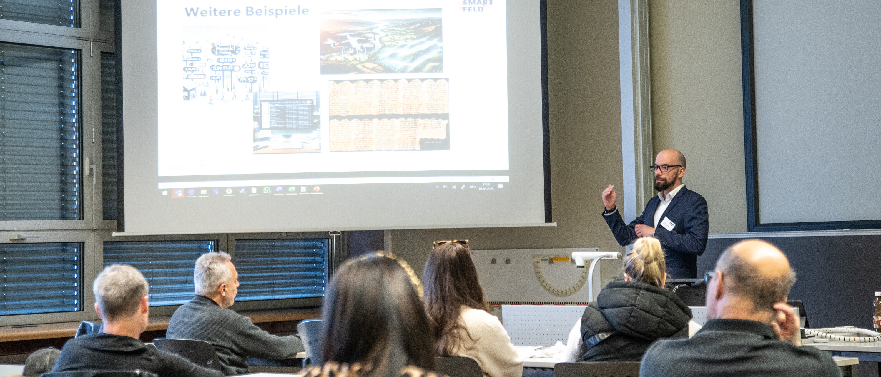 Wie Künstliche Intelligenz Entscheidungen trifft und Resultate erzeugt, haben die Besucherinnen und Besucher in einem Workshop von Smartfeld erlebt. Anschaulich hat Thomas Rastija mit den Teilnehmenden erarbeitet, auf welcher Grundlage eine Künstliche Intelligenz Daten sortiert, verarbeitet und Entscheidungen mit einer bestimmten Wahrscheinlichkeit trifft.