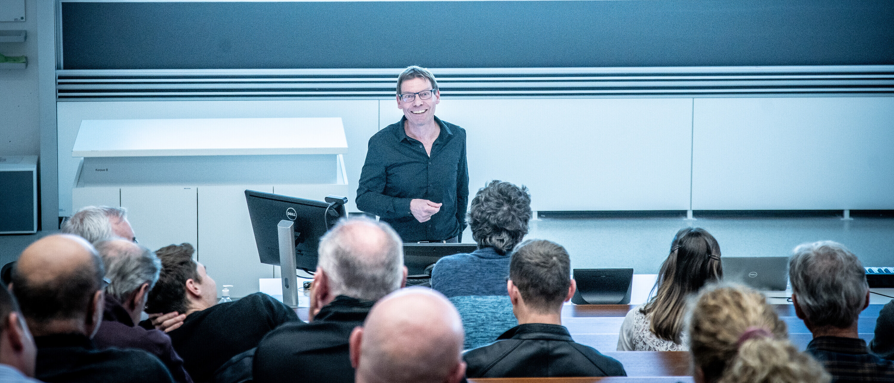 Ein Highlight des Abends war das Keynote-Referat von Christoph Würsch und Daniel Lenz. Auf sehr unterhaltsame Weise haben sie gezeigt, wie Künstliche Intelligenz in unser Leben gefunden hat und dass sie im Alltag längst keine Zukunftsmusik mehr ist. Die Referenten, beides Dozenten im Bereich KI an der OST, haben erläutert, wie generative KI Musik und Bilder aus dem Nichts erschafft, wie schnell sie schreiben und programmieren kann und wie Roboter wie ANYmal durch Reinforcement Learning selbständig lernen.
