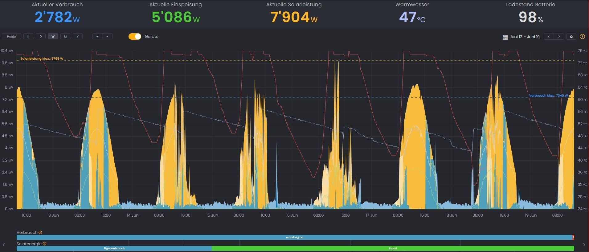 Seit der erfolgreichen Konfiguration optimieren die installierten Solar Manager Gateway den Eigenverbrauch in den entsprechenden Haushalten. Mithilfe der verfügbaren Webplattform können Statistiken wie «gesamte Produktion», «gesamter Eigenverbrauch» oder auch die «gesamte Autarkie» berechnet und dargestellt werden.