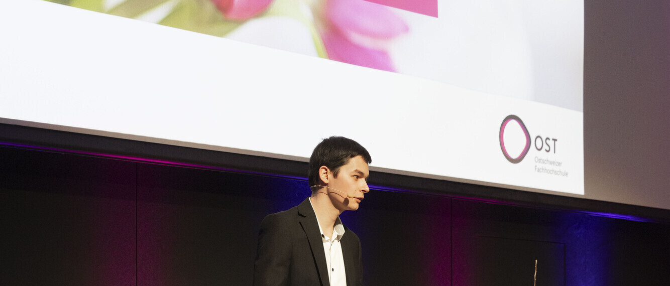 Ein besonderes Highlight: Die Auszeichnung für den besten Masterabschluss ging an Ivo Lenherr – herzlichen Glückwunsch!  Der Preis wurde von der Alvoso Pensionskasse überreicht.