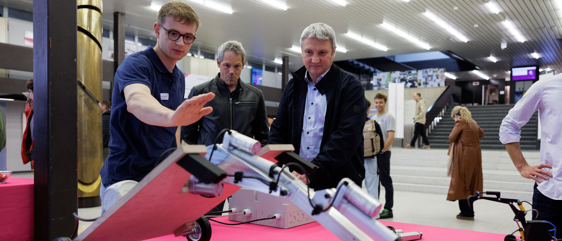 Wie entstehen marktrelevante technische Lösungen für reale Herausforderungen? Studierende des Bachelor-Studiengangs Maschinentechnik | Innovation an der OST – Ostschweizer Fachhochschule zeigten dies zum Abschluss ihres Entwicklungsprojekt eindrucksvoll. An einer Ausstellung präsentierten sie ihre Konzepte und Prototypen, die sie für den diesjährigen Industriepartner KAISER AG aus Liechtenstein entwickelt haben. Im Fokus des diesjährigen Projekts stand eine komplexe Aufgabenstellung aus dem Bereich der mobilen Schreitbagger – einer Spezialität der KAISER AG.