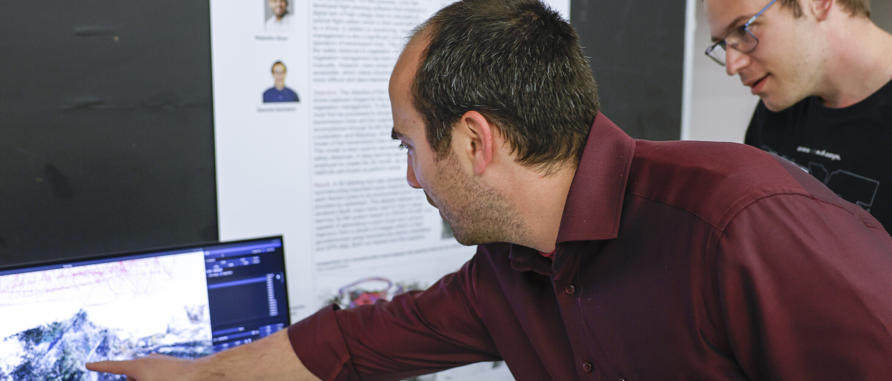 Zwei Teams haben sich mit Drohnen beschäftigt: Eine Gruppe hat einen Algorithmus entwickelt, der Drohnen von anderen Umgebungsgeräuschen unterscheiden kann. Ein weiteres Team überwacht mit Hilfe von Drohnen und einem 3D-Modell, das aus den Drohnenbildern generiert wird, Hochspannungsleitungen und die Vegetation, die zu nahe an die Leitungen heranwachsen könnte.