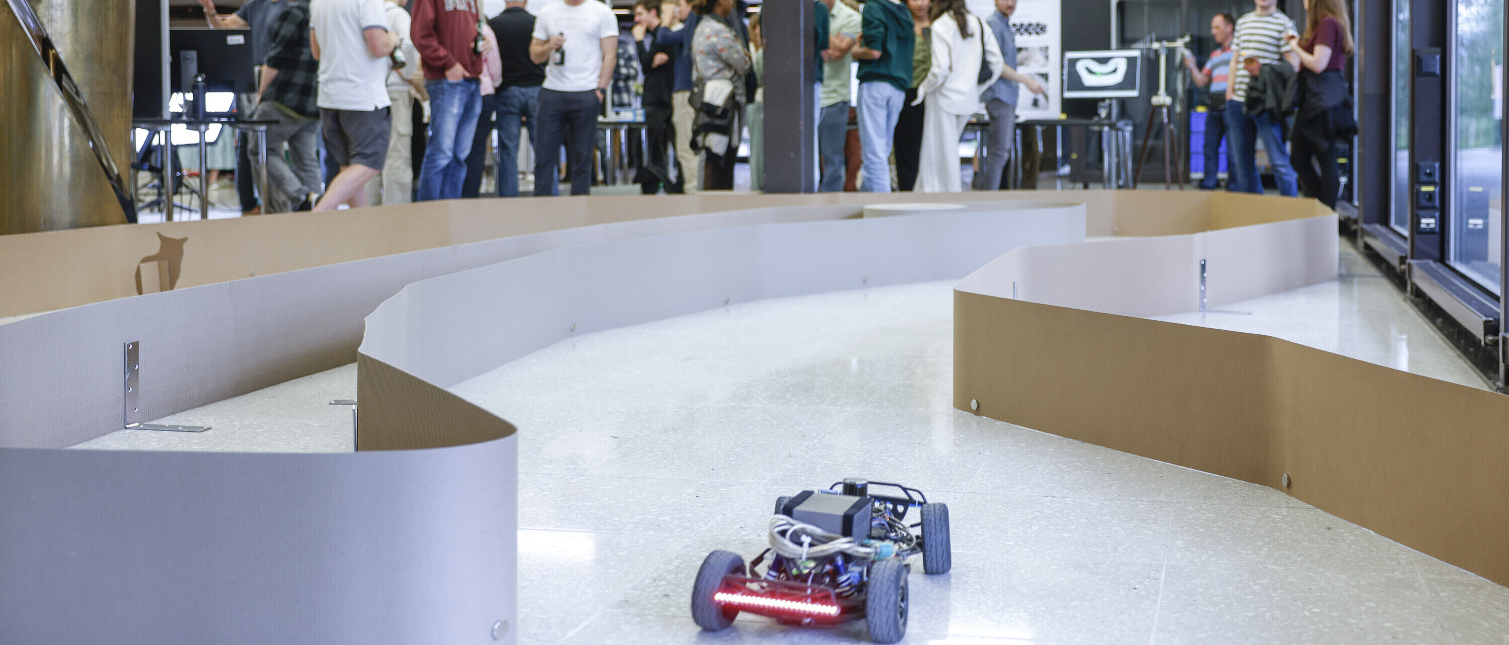 Besonders ins Auge gefallen ist beispielsweise der Parcours mit Rennauto, das mit Hilfe eines Digitalen Zwillings den Hindernissen auf der Strecke bei höchstmöglicher Geschwindigkeit ausweicht. Ein solcher Digitaler Zwilling ermöglicht bei Systemen für das autonome Fahren das sichere Testen von verschiedenen Szenarien.