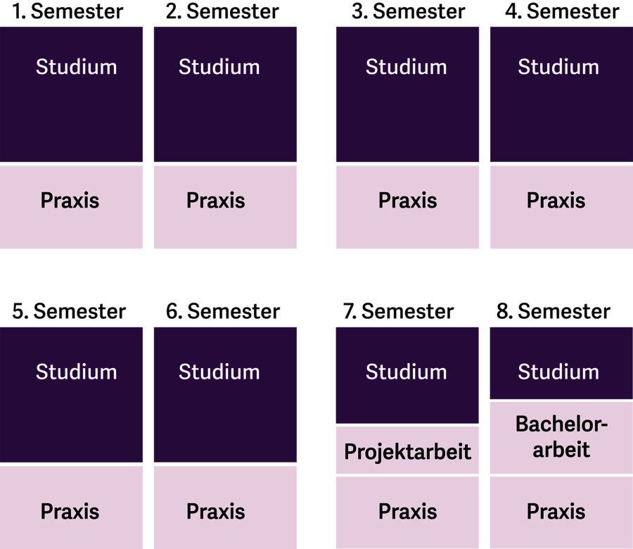 - OST Studiengang und Berufstätigkeit: Sie studieren 60% der Zeit und arbeiten 40% in einem Unternehmen.