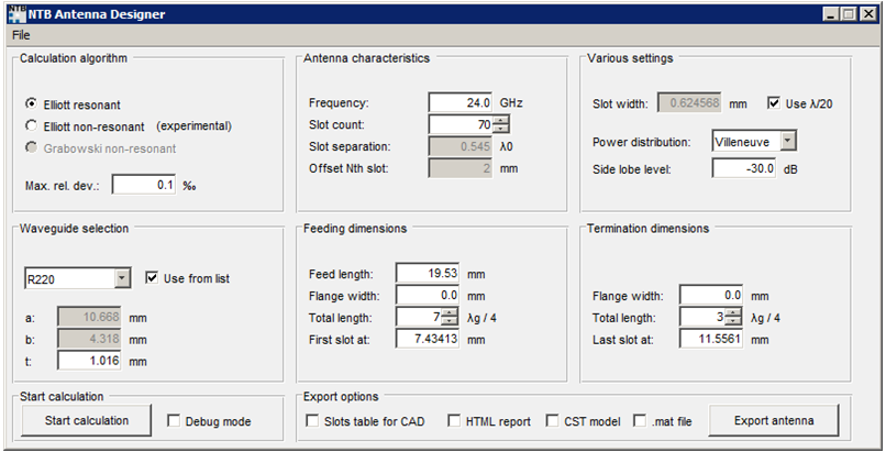 Antennen-Auslegungswerkzeug für resonante und nicht-resonante Waveguide-Slot-Antennen