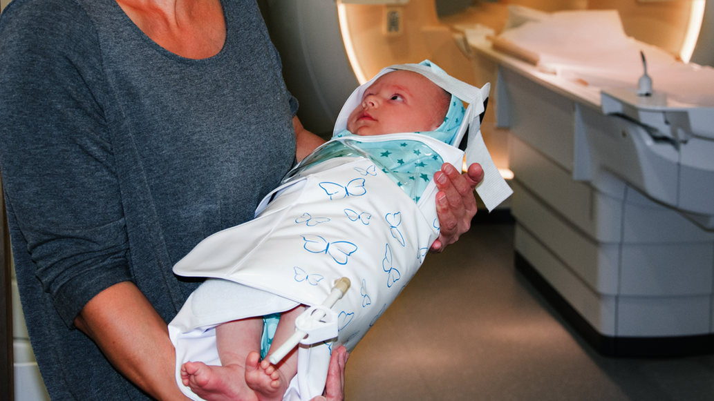 Das BabyFix Cocoon schafft ideale Bedingungen für einen sicheren und behutsamen Untersuchungsablauf bei Neugeborenen im MRT.