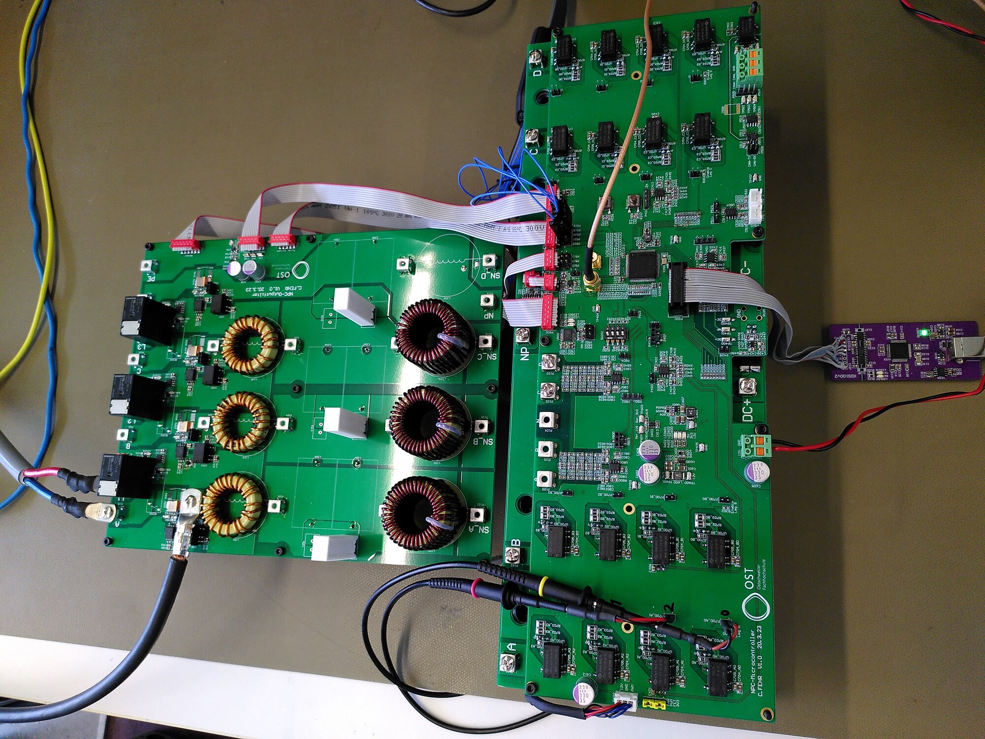 Im Rahmen einer Masterarbeit wurde ein bidirektionales On-Board-Ladegerät für Elektroautos entwickelt. Dabei wurden die Anforderungen an netzgebundene Konverter untersucht und mit den Ergebnissen von unterschiedlichen Reglerrealisierungen im 3-Level-Konverterprototyp verglichen. Der Konverter erreichte einen Wirkungsgrad von über 99 % und ermöglicht sowohl das Einspeisen in das Versorgungsnetz als auch einen eigenständigen Inselbetrieb.