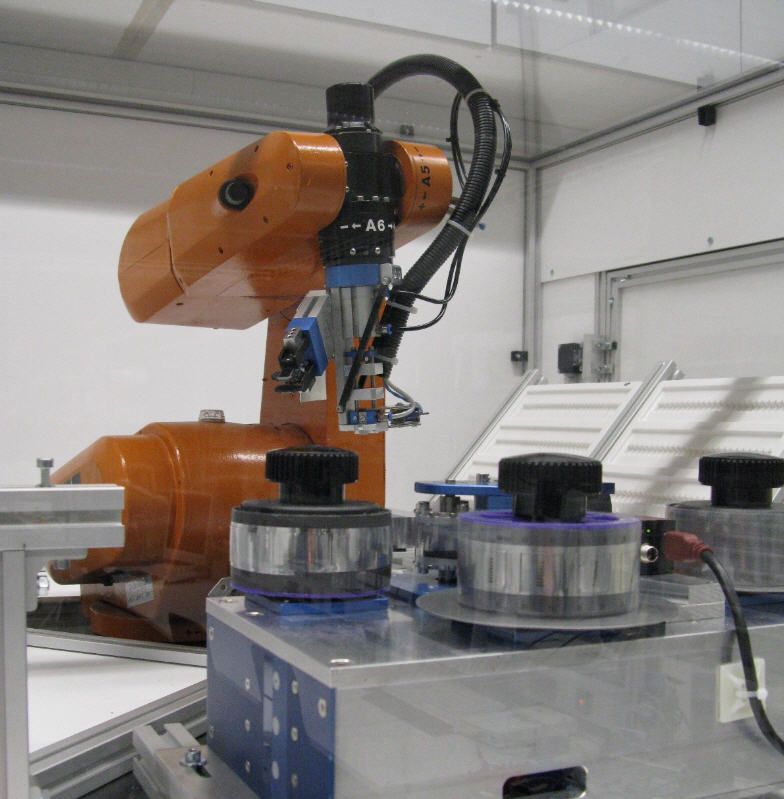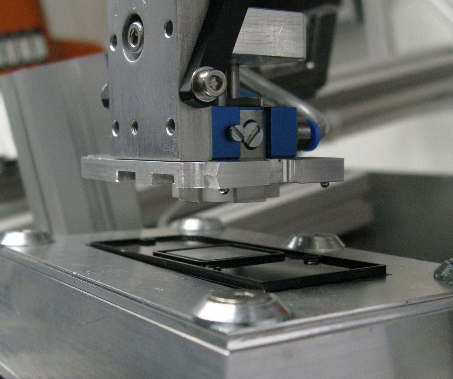 The aim of the project was to develop an automated solution for bonding multi-layered microfluidic devices made from different materials that is suitable for mass production. As one microfluidic part is coated with biological molecules before bonding the complete bonding process needs to be carried out at room temperature.