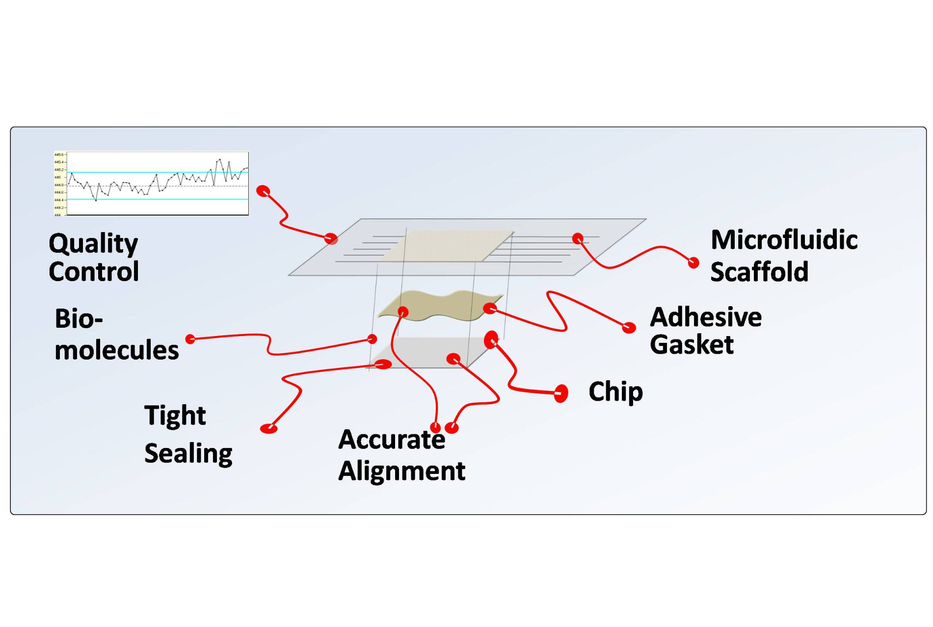 Neuartiger Assemblierprozess für mikrofluidische Komponenten zur Analyse von kleinen Probenmengen in der Diagnostik und Pharmazie.