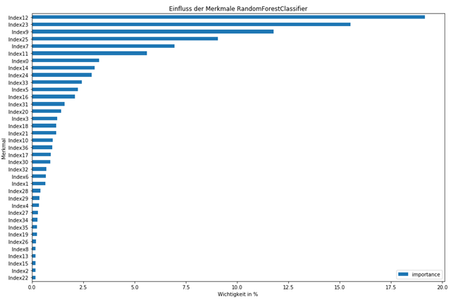 Um eine Aussage über die Wichtigkeit der Vegetationsindizes zu treffen, wird die Wichtigkeit der (permutation importance) der Indizes herangezogen. Ein Beispiel ist in der Abbildung 4 ersichtlich.