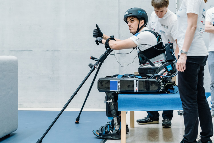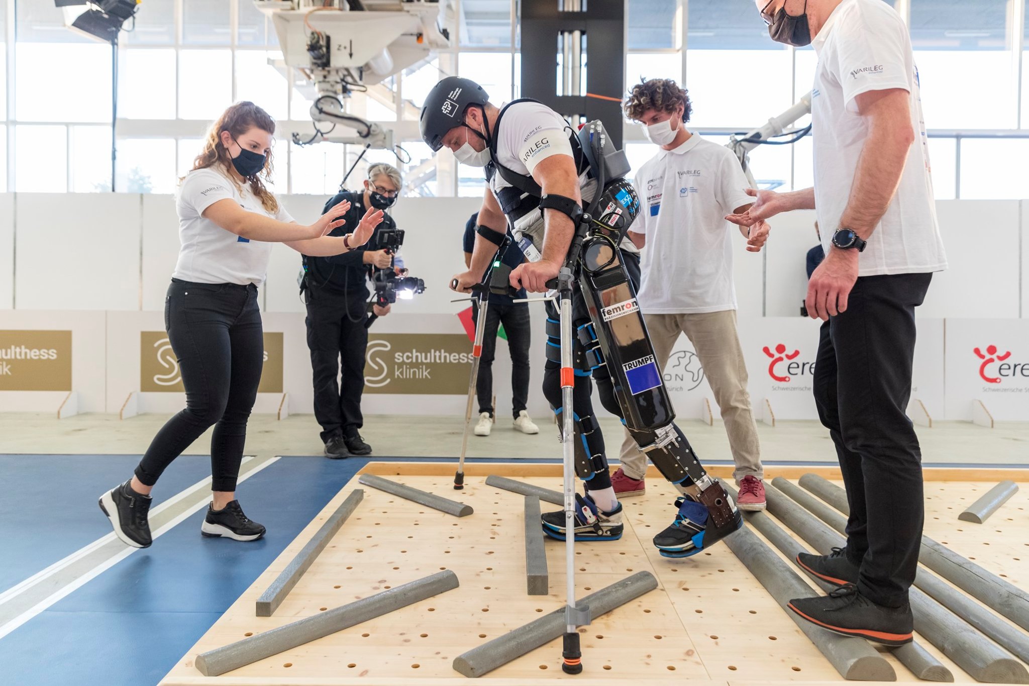 VariLeg enhanced started as a Focus project with 15 students from ETH Zurich and OST – Eastern Switzerland University of Applied Sciences in the summer of 2018. The goal was to create a lightweight device for the CYBATHLON discipline 'powered exoskeleton race'. It was tailored to our two pilots Rolf Schoch and Thomas Krieg. After the one year project the exoskeleton was first shown in the roll out event at ETH Zurich.