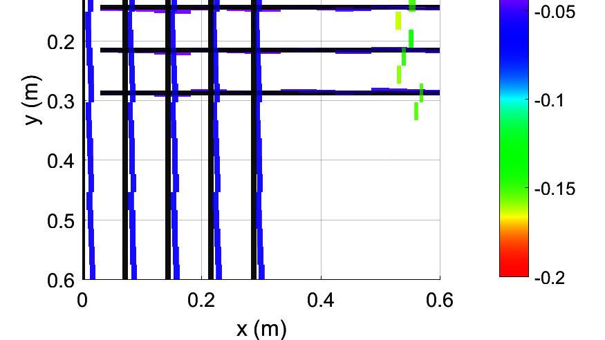 - Für Quickscan-Recording und Imagescan-Processing wurde eine Prozesskette zur Durchmesser-, Cover und Lagenschätzung von Armierungseisen entwickelt, welche die Signale lokal auswertet (lokaler Ansatz). Die Auswertestrategie basiert hier auf den Informationen einzelner Spulen oder Spulenkombinationen, welche unabhängig voneinander und Spur für Spur ausgewertet werden.