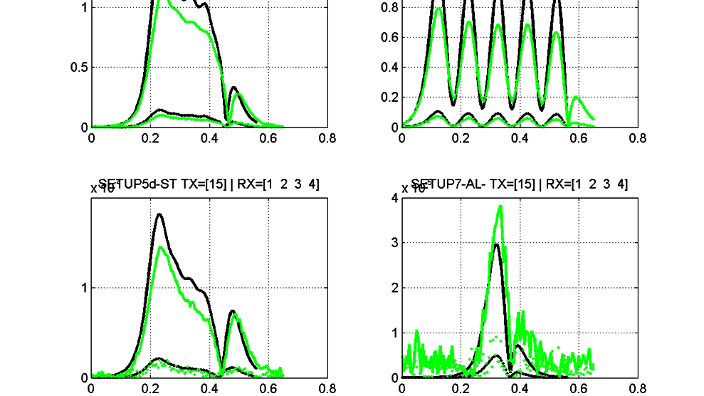 - Ein Scan-Simulator (ScanSim) basierend auf analytischen, breitbandigen Dipolmodellen wurde entwickelt und validiert. Er erlaubt die schnelle Berechnung der induzierten Signale im Zeit- oder Frequenzbereich über typischen Objekten wie Eisen oder Gitter eines beliebigen induktiven Messsystems im quasistatischen Bereich der Maxwell-Gleichungen. Wo ein FEM-Programm zwei Wochen Rechenzeit für die Berechnungen eines Imagescans über einer Fläche von 60x60cm2 benötigt, braucht ScanSim noch etwa eine Stunde. Mit vorausberechneten Wissensbasen für einen Scanner sind es noch wenige Sekunden. Dieses extrem schnelle Vorwärtsmodell erlaubt die effiziente Inversion der Daten mittels Optimierung. Mit diesem Simulator wurden bereits einige Spulen des PS300 optimiert.