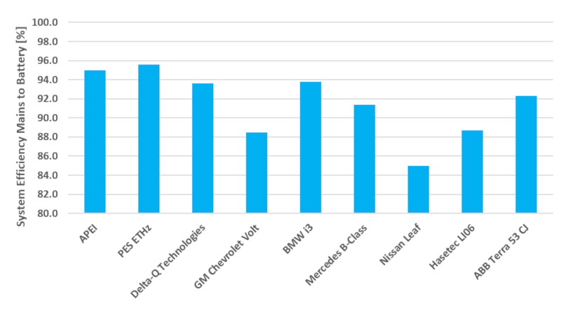 Allgemein kann festgehalten werden, dass sich die Standby-Verluste wohl nur geringfügig unterscheiden im Vergleich mit konduktiven Ladesystemen. Die Effizienz beim Laden (Effizienz der Energieübertragung vom Netz bis zum Batterieanschluss) liegt tendenziell ein paar Prozente tiefer als bei konduktiven Systemen. Obwohl ein induktives Ladesystem hocheffizient betrieben werden kann, leidet der Wirkungsgrad systembedingt unter dem Einfluss der nicht immer genau passenden Ausrichtung von Sender- und Empfängereinheit zueinander.
