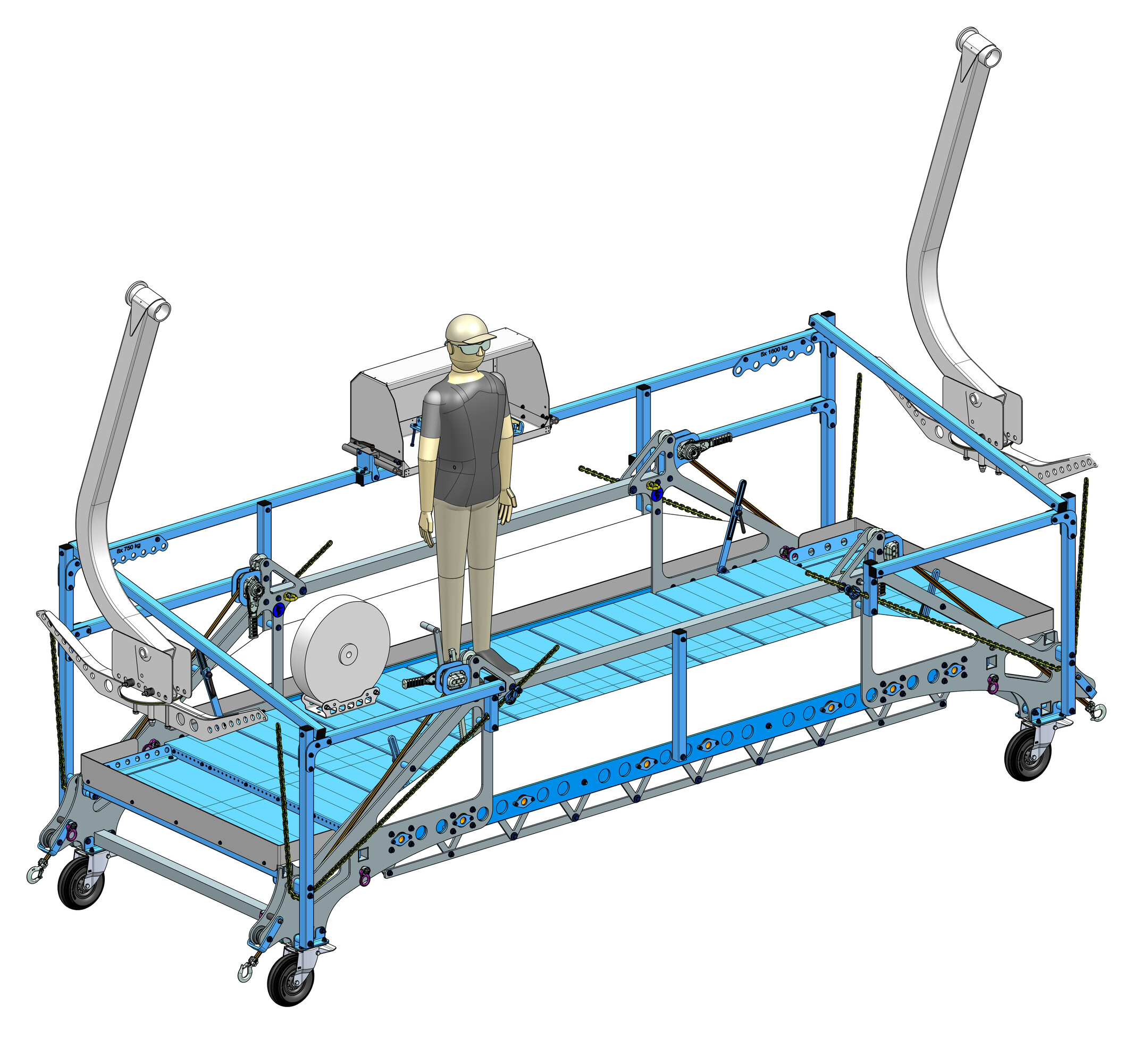Rollenbatterien von Seilbahnen müssen alle 6 Jahre komplett zerlegt und geprüft werden. Dies ist sehr aufwendig, da die komplette Rollenbatterie ausgebaut und mit dem Helikopter zum Wartungsdepot und wieder zurückgeflogen werden muss. Colombo Seilbahnrevisionen GmbH hat sich auf Seilbahnrevisionen spezialisiert und eine mittlerweile patentierte Alternative zu der aufwendigen Methode entwickelt: Die Revision erfolgt mithilfe einer Wartungsplattform direkt am Mast. Die dazu benötigte Wartungsplattform muss leicht und gleichzeitig robust sein sowie alle Funktionen wie Höhen- und Neigungsverstellung zuverlässig erfüllen.