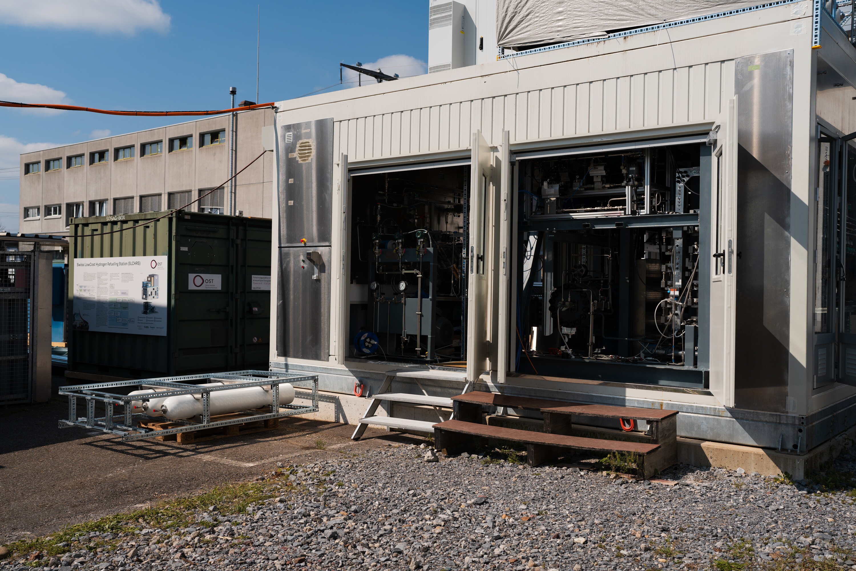 Der Prototyp, welcher am IET entsteht, beherbergt deshalb zu Entwicklungszwecken alle notwendigen Komponenten aller zukünftigen Serienmodule und vereint diese in einem einzigen 20-Fuss-Container auf unserer neu entstehenden Forschungsplattform, welche u.A. auch Raum zur Erprobung neuer H2-Komponenten bieten wird.