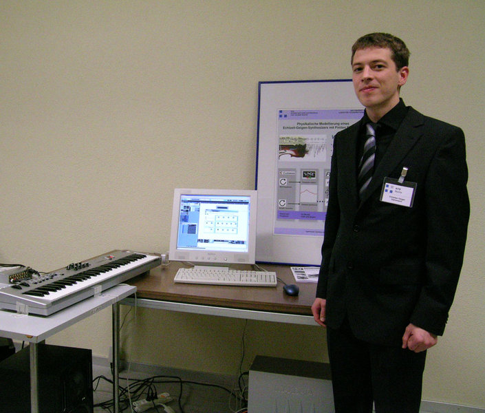 In der Diplomarbeit von Christian Geiger wurde ein Physical Modeling Synthesizer entwickelt. Es ist in C++ implementiert und als VST-Plugin realisiert, so dass er unter verschiedenen VST-Hosts lauffähig ist. Der Synthesizer implementiert ein physikalisches Modell von Geigensaiten. Die Differentialgleichungen, die die Bewegung der Saite beschrieben, werden mit der Methode der Finiten Elemente gelöst. Dies ist eine andere Methode als die Standard-Implementierungen mit digitalen Waveguides