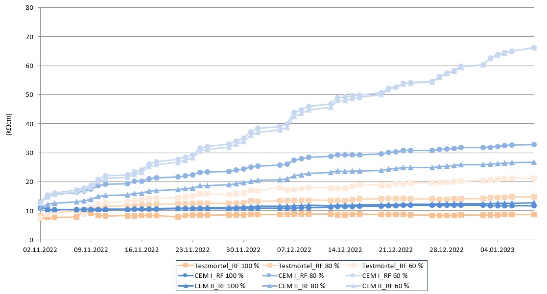 Messungen des spezifischen elektrischen Widerstandes bei Beton und Mörtel