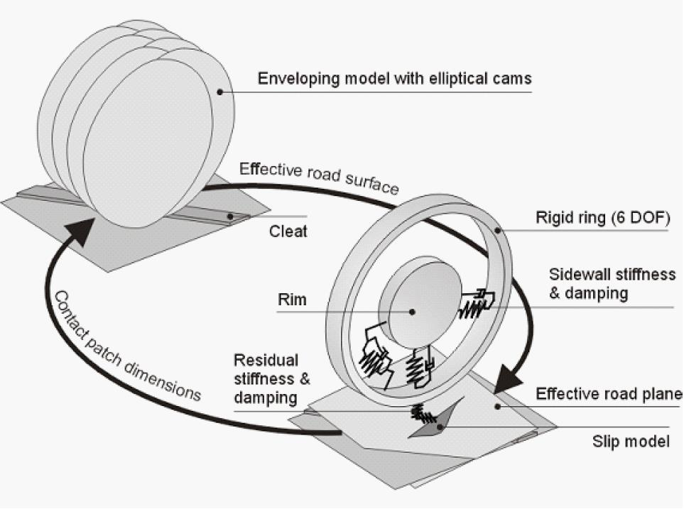 Durch die Verlagerung der Bremsen ins Fahrzeug verringert sich die ungefederte Masse im Rad. Dies führt dazu, dass der Fahrkomfort erfahrungsgemäss steigt. Was diese Gewichtsverringerung für die Fahrsicherheit bedeutet, war bis vor diesem Projekt unbekannt. Mittels Mehrkörpersimulation (MKS) mit den entsprechenden Reifenmodellen wurden diese Eigenschaften untersucht und anschliessend mit realen Fahrversuchen verifiziert. Im Gegensatz zu Fahrdynamiksimulationen müssen die Reifenmodelle für den Fahrkomfort, die unebene Fahrbahn und das MKS-Modell übertragen können.