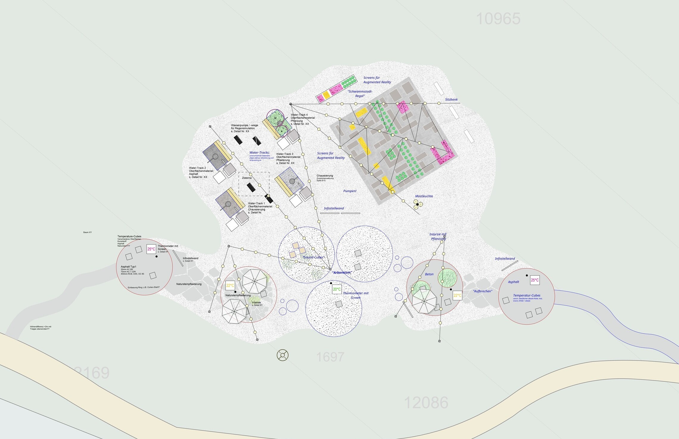 Der Ausstellungsbereich ist in Form einer idyllischen Oase im Freien konzipiert. Revitalisierte Böden, bereichert mit einer artenreichen Vegetation, erschaffen einen Ort, der als interaktiver Chatroom fungiert und die Besucher und Besucherinnen zu sinnvollen Gesprächen anregt. Führungen, Themenpfade, Workshops für Schulklassen und «Meet the Scientists»-Veranstaltungen verstärken den interaktiven Dialog und bieten dem Publikum vielfältige Möglichkeiten, sich mit den Themen der Schwammstadt und Biodiversität auseinanderzusetzen.