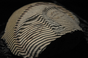 Streifenmuster auf Artefakt Die Weiterverarbeitung dieser Punktewolke ermöglicht es, die Oberfläche je nach Anforderung zu optimieren. In diesem Fall war dies nicht gewünscht, da die Reproduktion möglichst originalgetreu mit vorhandenen Defekten sein sollte. An die Oberfläche eines technischen Teils, wie zum Beispiel einer Autotüre, werden andere Anforderungen gestellt. Das Resultat dieses Prozessschritts ist eine polygonisierte Fläche, die für die weitere Verarbeitung verwendet werden kann.