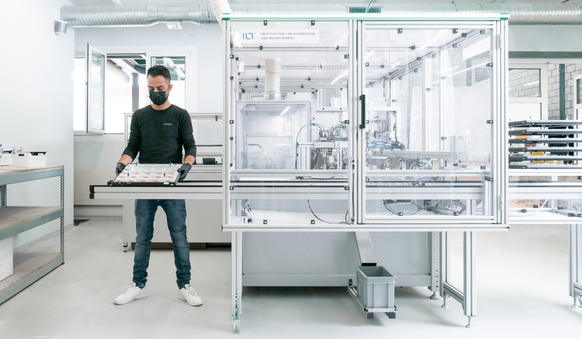 Das ILT hat in enger Zusammenarbeit mit einem Industriepartner eine Produktionszelle entwickelt, wodurch eine bemerkenswerte Durchsatzsteigerung erzielt wird. Bei dieser Entwicklung stellt das ILT erneut seine interdisziplinäre Kompetenz in den Bereichen der Mechatronik, Robotik, Prozessentwicklung und der Industrie 4.0 unter Beweis. Durch den hohen Digitalisierungsgrad in der Produktion werden massgefertigte Zahnschienen effizient und automatisiert hergestellt.