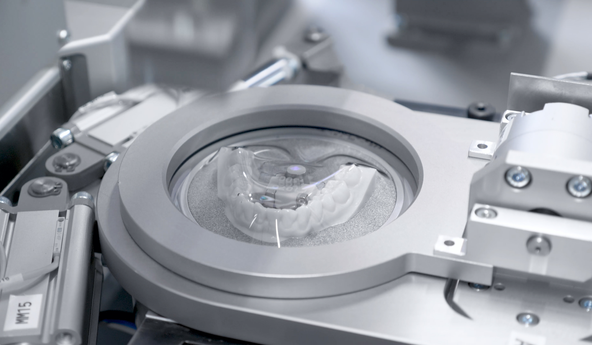 Die Automatisierung der Produktionsschritte war eines der Ziele, um digitalisierter und effizienter zu wachsen. Der Prozess der Aligner Herstellung ist vollautomatisiert – vom 3D-Druck der digital erfassten Gebisse bis hin zum Tiefziehen.