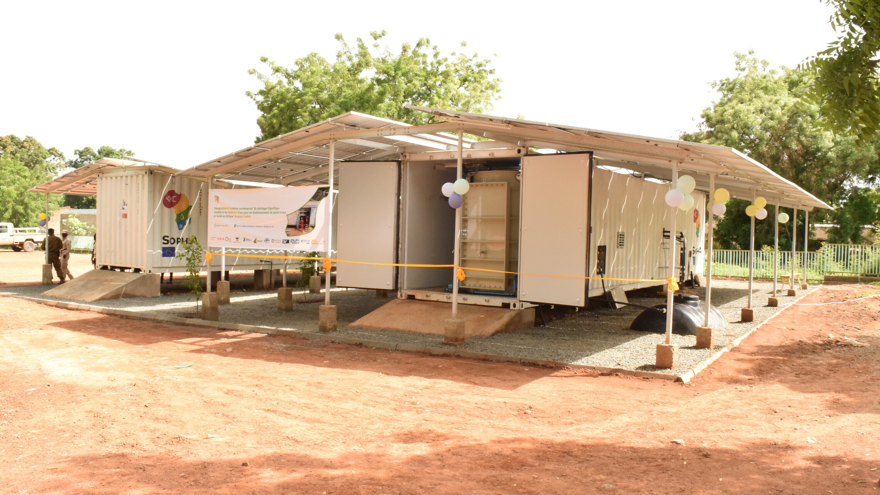 Die SophiA-Module werden überwiegend in Afrika hergestellt. Nach der Entwicklung im Konsortium und dem Bau der Systeme durch den SophiA-Partner Everflo in Südafrika, werden die Container stufenweise in vier ländlichen Krankenhäusern auf dem afrikanischen Kontinent in Betrieb genommen und über ein Monitoring ausgewertet. Installationen sind in Burkina Faso, Kamerun, Malawi und Uganda geplant. In Burkina Faso sind die Container im Sedogo Hospital in Léo seit Mai 2024 erfolgreich in Betrieb.