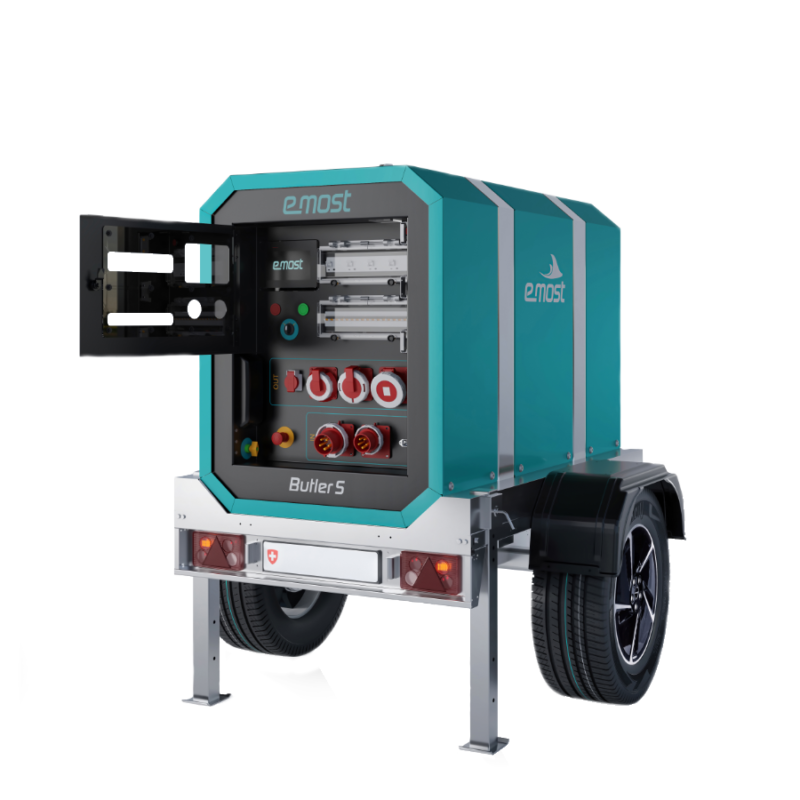 Der Buttler S, die bestehende mobile Stromversorgung, der emost AG mit 50 kVA Nennleistung und einer Batteriekapazität von 25 kWh