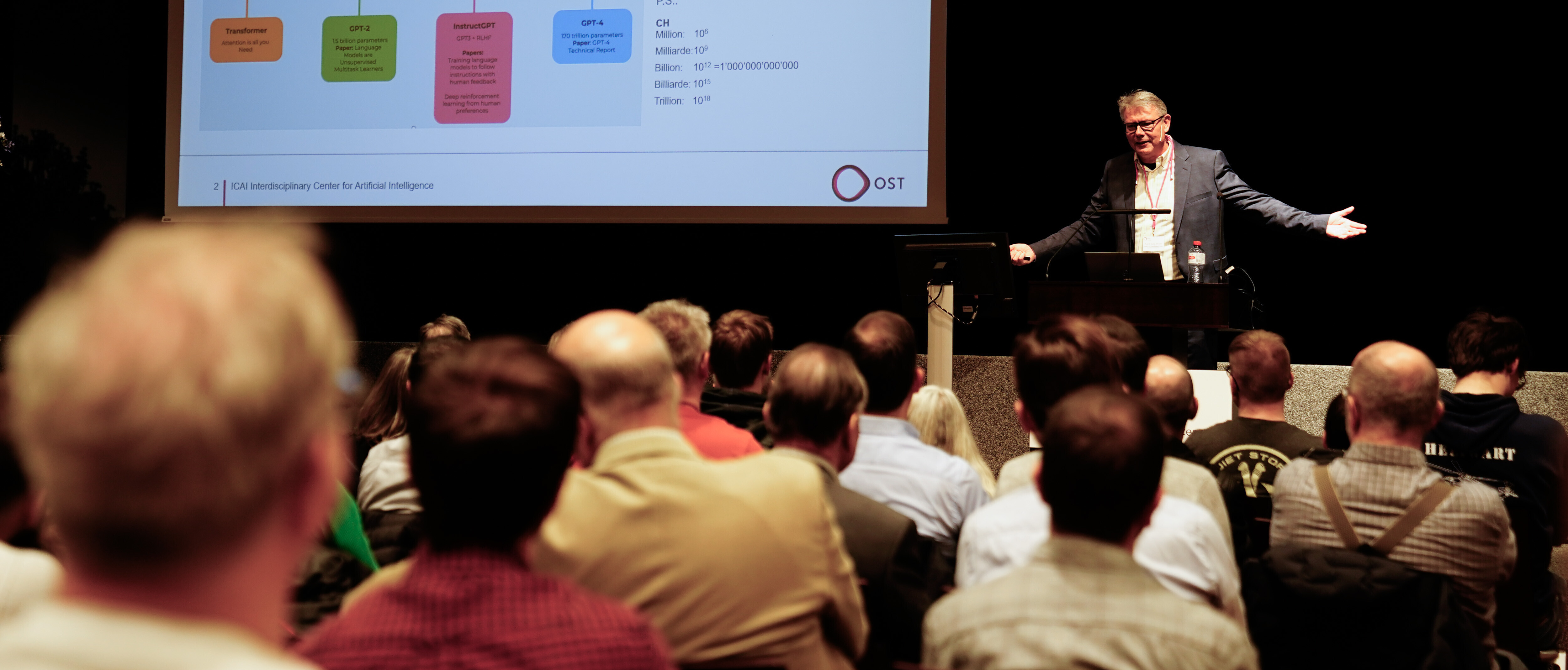 Künstliche Intelligenz (KI) erobert unseren Alltag. Den Engineers’ Day 2024 widmeten wir ganz dem Thema KI. Am Campus Rapperswil-Jona zeigten OST-Mitarbeitende wie KI funktioniert, was sie kann und wie sie weiterentwickelt wird. Neben einem öffentlichen Referat und einer Vorlesung stellten unsere Institute KI-Projekte vor. Mehr als hundert Gäste haben den Event besucht.