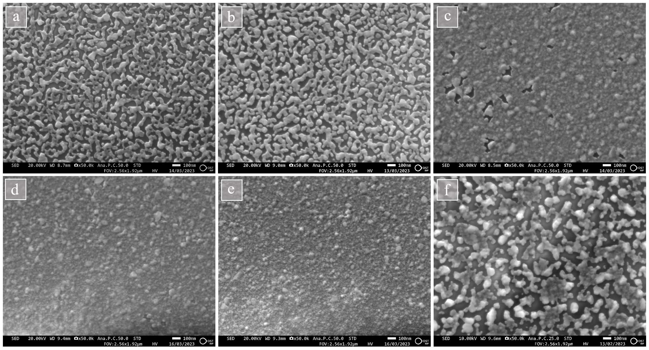 Für die Herstellung der Filterstapel wurden Prozessentwicklungen für die jeweiligen einzelnen Materialien durchgeführt. Die Prozessentwicklung der dielektrischen SiO2 - und TiO2-Schichten beinhaltete die Optimierung von absorptionsfreien Schichten, um möglichst hohe Transmissionen zu gewährleisten. Um möglichst dünne (<20 nm) Silberschichten mit homogener Oberflächenmorphologie zu entwickeln, wurde der Arbeitsdruck in der Sputterkammer optimiert. Die Oberflächenmorphologie konnte anhand von REM-Aufnahmen charakterisiert werden.