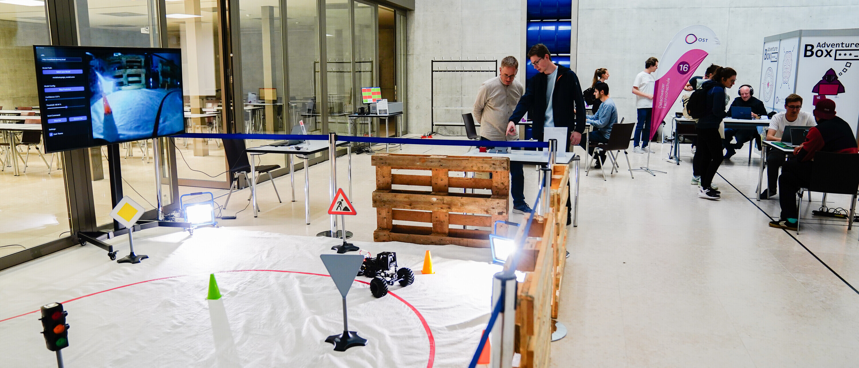 Ganz nach dem Veranstaltungsmotto «Wer wissen will, wo Wissen wirkt.» gaben Forschende, Dozierende und Mitarbeitende der OST tiefe Einblicke in ihr Schaffen an der Fachhochschule und standen Rede und Antwort. Verschiedene Rundgänge, Show-Vorlesungen und Workshops animierten dazu, die Faszination für die angewandte Wissenschaft zu entdecken: Wie kann man mit Wasserstoff Strom speichern? Lassen sich Ferien mit künstlicher Intelligenz klimaschonend planen? Wie retten Roboter Leben in Notsituationen? Wie funktioniert eigentlich das Internet und was passiert genau beim Hacken?
