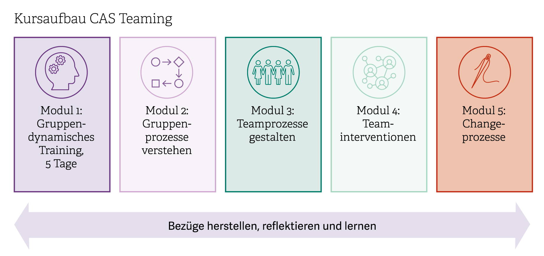 Im Zertifikatskurs (CAS) Teaming profitieren Sie von einem gruppendynamischen Training durch ausgebildete Trainerinnen und Trainer. Dabei werden Dynamiken und Prozesse, die in Gruppen und Teams ohnehin immer ablaufen, erlebbar und besprechbar gemacht. Ein besonderer Schwerpunkt liegt auf der Erhöhung der eigenen Sensibilität in der Wahrnehmung dieser zwischenmenschlichen Prozesse. Dadurch kann die eigene Arbeitszufriedenheit und das Wohlbefinden deutlich gesteigert und die eigene Resilienz und Gesundheit gestärkt werden.