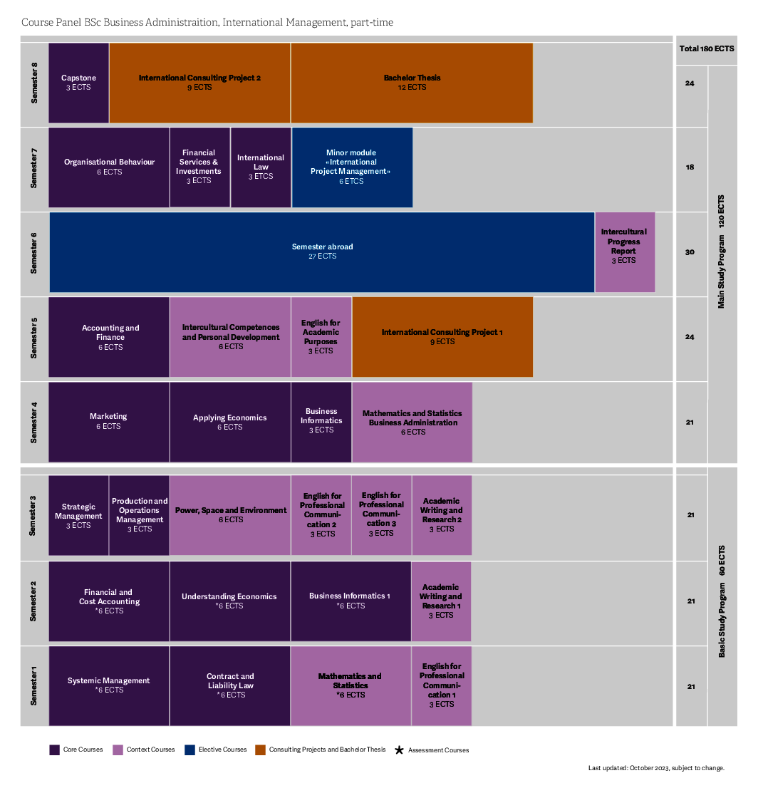 In the International Management track, the semester abroad is an integral part of your curriculum. If you study full-time, you can go abroad in the 4th or 5th semester. Part-time students can go in the 6th semester.