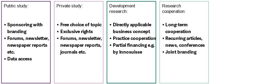 We combine academic research methods with practical implementation. Our aim is to explore current issues with you and work together on business concepts to ensure that you are best placed to tackle future challenges and opportunities.