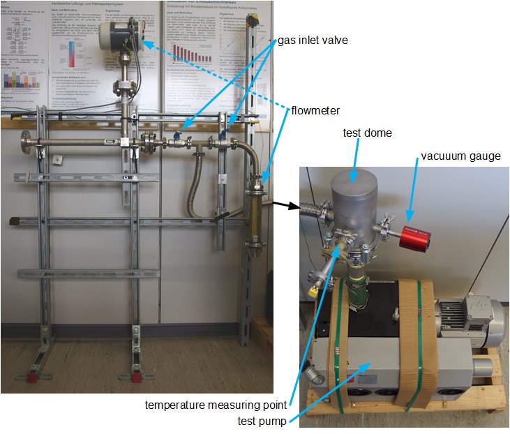 In order to determine such vacuum pump characteristics, a test stand was set up with which vacuum pumps with nominal pumping speeds between approx. 20 and 120 m3 / h can be measured.